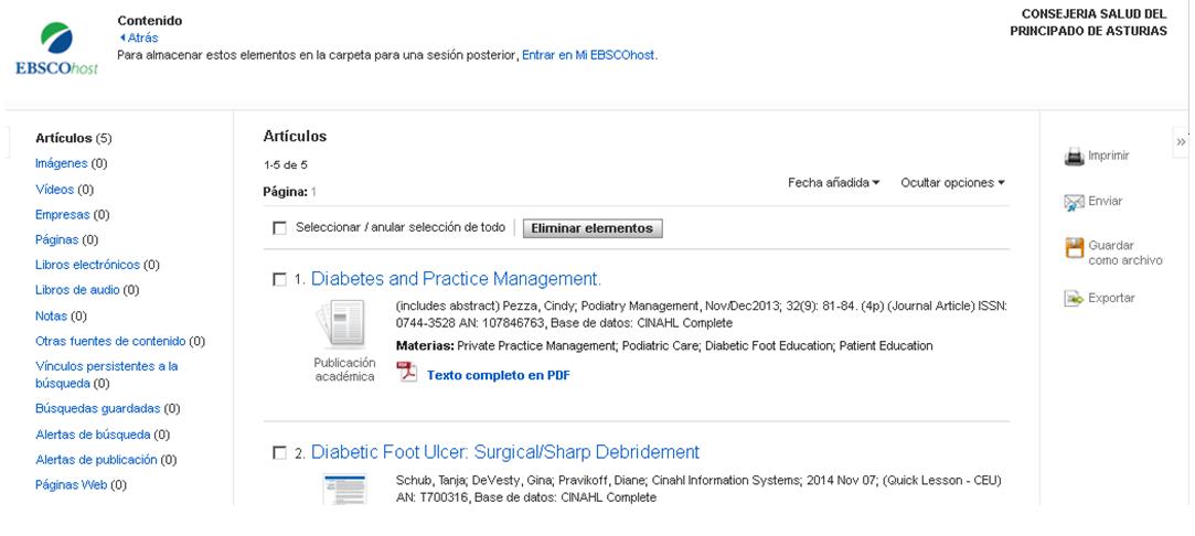 Una vez realizada la búsqueda, en la pantalla se nos ofrecerá un listado de resultados con opciones para visualizarlos, y guardarlos.
