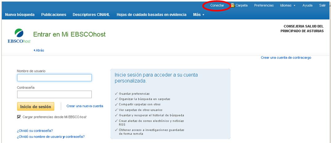 Entraremos seleccionando la opción "Conectar" de la parte superior.