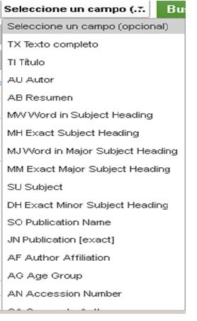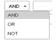 El contenido de los distintos cajetínes de búsqueda podemos combinarlos con los operadores booleanos AND, OR y NOT en desplegable y seleccionando el de nuestro interés: