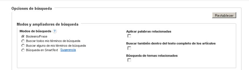 Debajo de los cajetines de búsqueda tenemos las "Opciones de búsqueda":