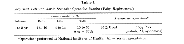 A pesar de las dificultades, Ross y Braunwald escriben un artículo importante para la época que certifica, con las reservas comentadas, el papel de la cirugía correctora de la estenosis aórtica adquirida sintomática del adulto. No se comenta aquí la estenosis congénita, que ellos contemplan, por tener menor importancia en la medicina de hoy día.