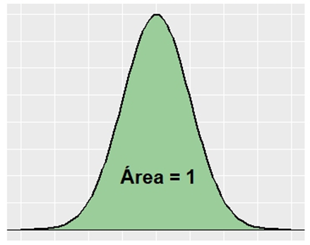 - El área total bajo la curva de una función de densidad es igual a 1 y las regiones que señalemos en ella representan probabilidades.