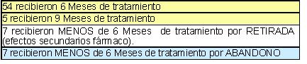 De los pacientes en que se inició el tratamiento preventivo (Quimioprofflaxis), los resultados que demuestran el excelente seguimiento del tratamiento son los siguientes (Tabla 2):