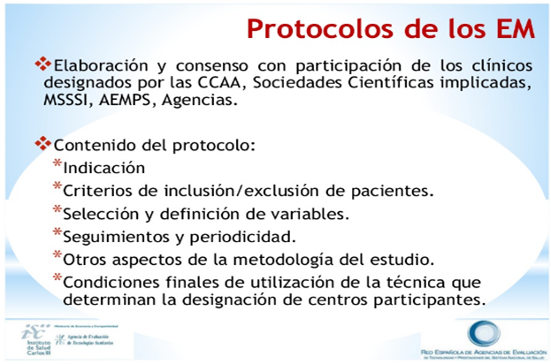 Cada estudio de monitorización está coordinado técnicamente por una Agencia de evaluación de la RedETS. La evaluación se realiza siguiendo un protocolo clínico consensuado con grupos de expertos y durante un período de tiempo prefijado.